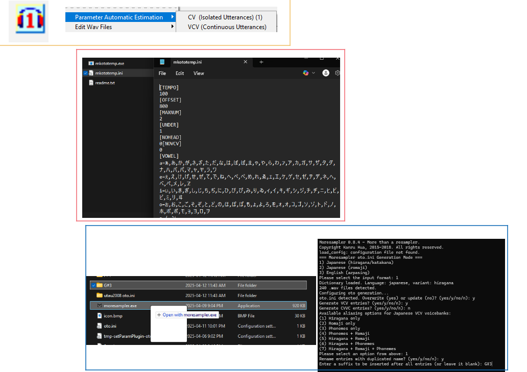 For making your base oto.ini, it would be possible to do all the configuration and aliasing work in Setparam, vLabeler, UTAU, or any text editor, starting from scratch or working off of a base.