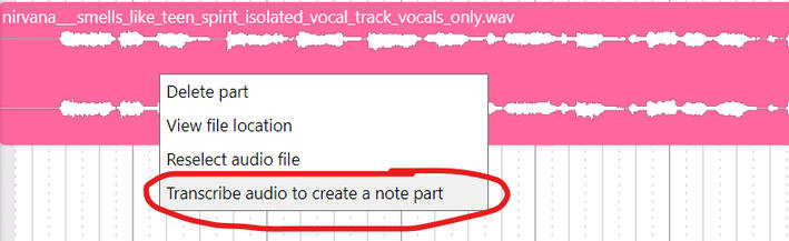 ...Right click the audio track and press "Transcribe audio to create a note part"...