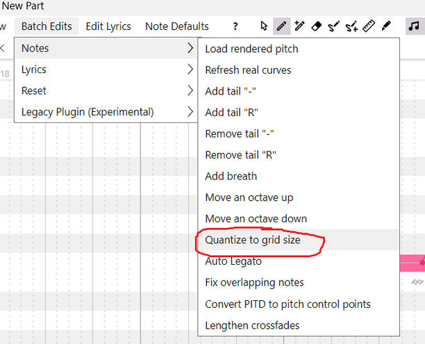 In the "Batch Edits" section in the track editing window, go to "Notes" and press "Quantize to Grid Size."